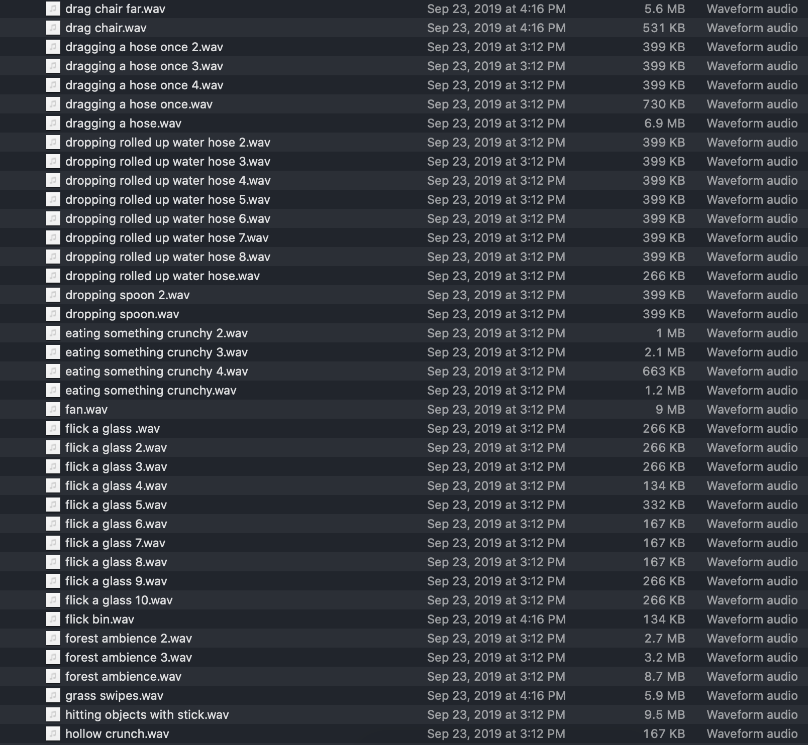 Best foley sound effects pack for your projects. This ultimate sound pack includes 307 ready to use film sound effects. Features cinematic sound effects such as nature sounds (sticks, leaves, rocks etc.), indoor sounds (cutlery, squeaky door, locks) and one shot hit sounds (crunch, smacks, shuffle). High quality audio sound effects for video editing.