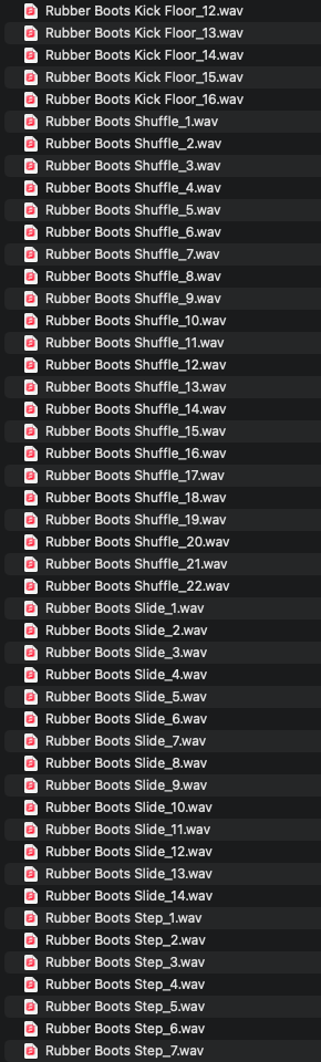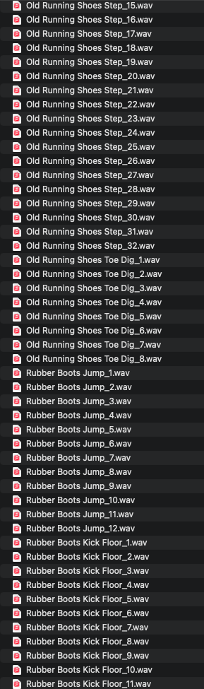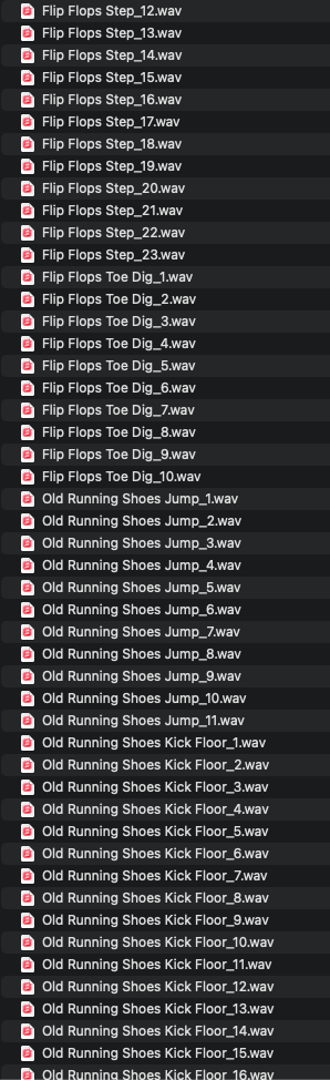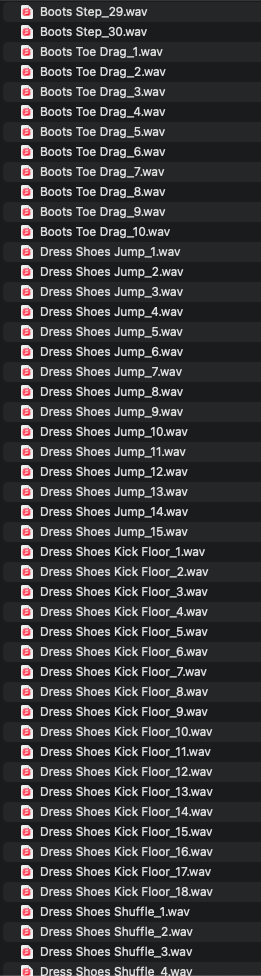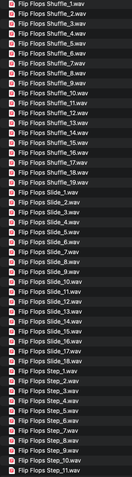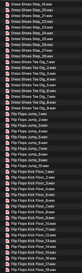 Foley Footsteps on Tile Sound Effects 2 is complete with 801 individual foley footstep sound effects. Footstep sound effect movements include stepping, shuffling, jumping, sliding, kicking floor and toe digging all no a tile surface. Features 8 different styles of footwear such as sneakers, flip flop, running shoes, old running shoes, boots, rain boots, dress shoes and bare feet.