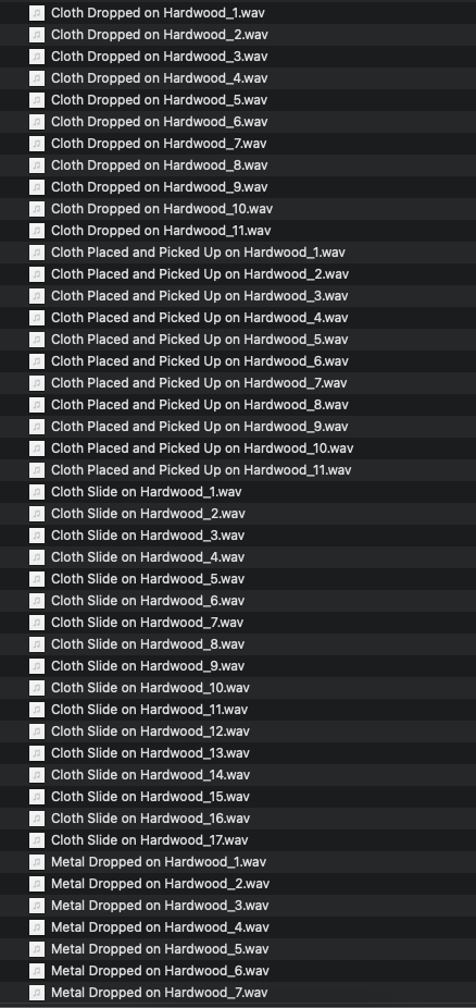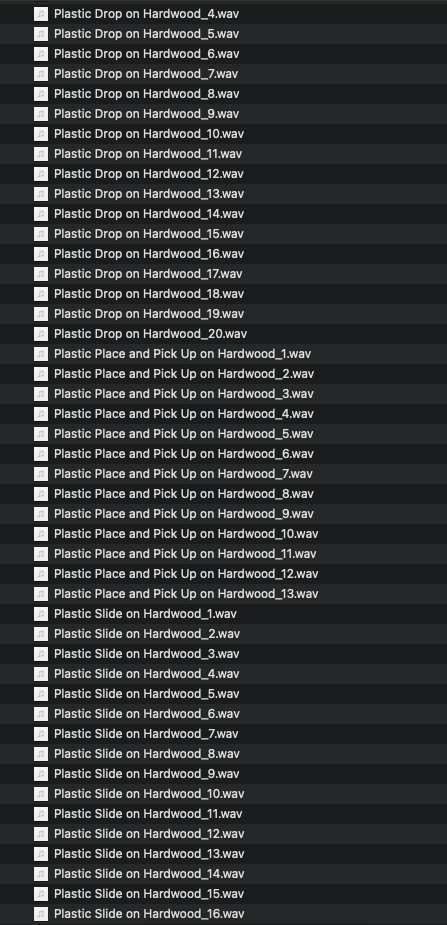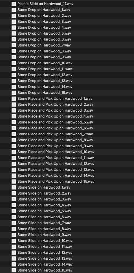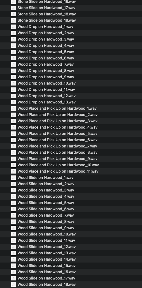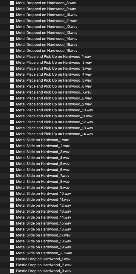 Objects on Hardwood sound pack contains 230 individual foley sound effects. Includes 5 objects (wood, metal, plastic, cloth and stone) interacting with a hardwood surface. Object movement includes dropping, placing, picking up and sliding.