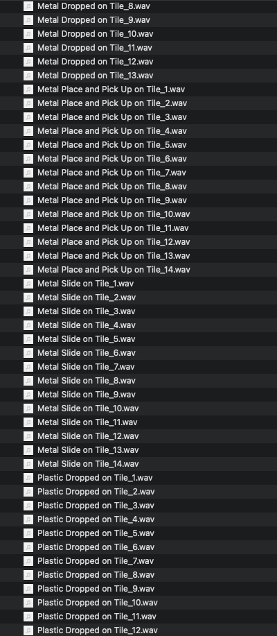 Objects on Tile sound pack contains 219 individual foley sound effects. Includes 5 objects (wood, metal, plastic, cloth and stone) interacting with a tile surface. Object movement includes dropping, placing, picking up and sliding.