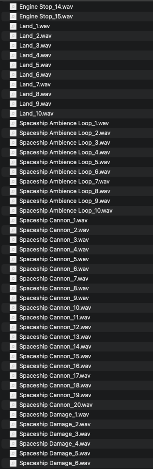 Explore a universe of audio possibilities with a diverse range of sounds, including spaceship engine ignition and shutdown sequences, dramatic ship liftoffs and smooth landings, the electrifying pulse of ship lasers and cannons, the heart-pounding alerts of ship damage, the urgent blare of alarms, and the tactile clicks and thuds of buttons and doors.